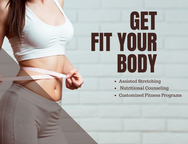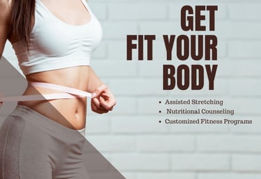 Enhance your strength, flexibility, and overall well-being with personalized fitness services designed to meet your unique goals. I offer assisted stretching to improve mobility, release tension, and prevent injuries; customized fitness programs tailored to your body’s needs, whether you're focused on weight loss, strength building, or longevity; and nutritional counseling to support a balanced, sustainable lifestyle. Together, these services create a holistic approach to help you move better, feel stronger, and live healthier.